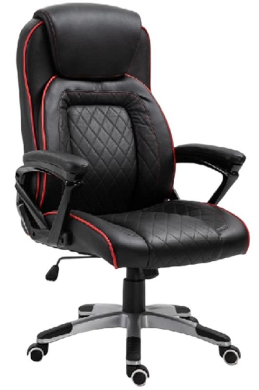Durable office chair designed for professional environments, featuring PU castors for smooth rolling and a 350mm powder-coated base for enhanced stability and rust resistance. Equipped with a 100mm painted gas lift for height adjustment and a reliable tilt mechanism for ergonomic support. Chair includes powder-coated armrests with mesh padding for added comfort. Upholstered in black PU leather for a sleek, professional look.