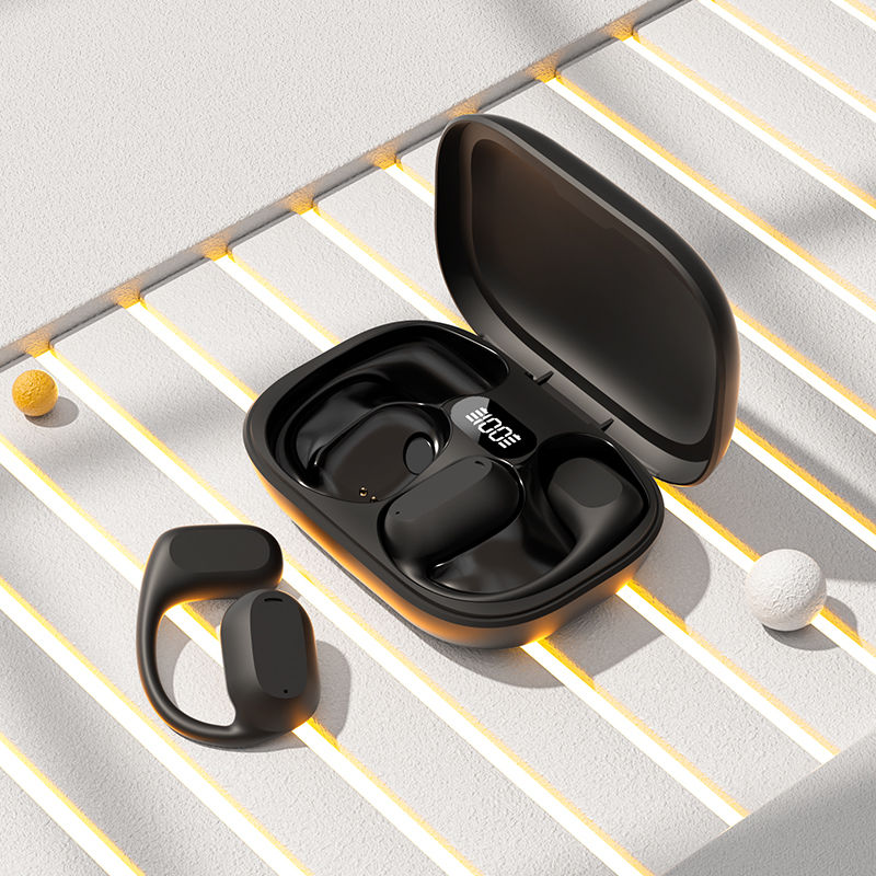 OWS/TWS wireless earphones powered by the Bluetrum 5656C2 scheme with Bluetooth V5.3, supporting A2DP, AVRCP, and HFP protocols for stable audio and call performance. Offers a transmission distance of up to 10 meters and up to 5-6 hours of calling time. Each earphone has a 50mAh battery, while the charging case provides 300mAh capacity with protective board. Features F14.2 copper ring speaker units for enhanced sound clarity.
