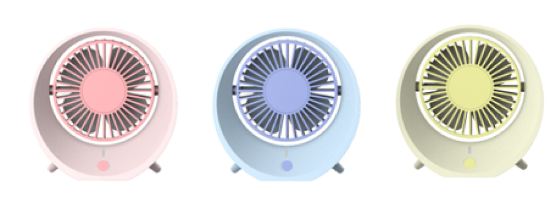 พัดลมแบบชาร์จไฟแบบพกพาได้นี้ใช้พลังงานจากแบตเตอรี่ลิเธียมขนาด 1200mAh และมีมอเตอร์ไร้แปรงสำหรับการทำงานที่เงียบและมีประสิทธิภาพ พัดลมรองรับการตั้งค่าความเร็วลมสามครั้งเพื่อตอบสนองความต้องการการระบายความร้อนที่แตกต่างกัน ด้วยแรงดันไฟฟ้าอินพุต 5V พัดลมต้องใช้เวลาประมาณ 4 ชั่วโมงสำหรับการชาร์จเต็มและให้เวลาการใช้งาน 1-3 ชั่วโมงขึ้นอยู่กับความเร็วที่เลือก สร้างจากส่วนประกอบอิเล็กทรอนิกส์ ABS+PP+พัดลมมีความทนทานและมีน้ำหนักเบามีให้เลือกทั้งสีน้ำเงินสีชมพูและสีเหลืองพัดลมเหมาะสำหรับการระบายความร้อนส่วนตัวในระหว่างการเดินทาง